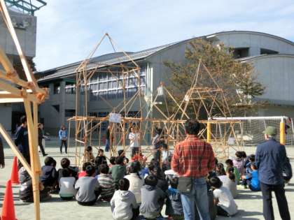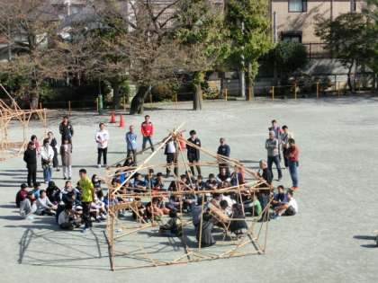 それぞれのグループの作品を紹介する時間です。みんなで話し合って決めた家のタイトルなどを発表し、製作のイメージを説明します。講師の先生方からも講評をいただきました。