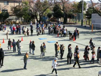 今日はおよそ400名の方々に参加していただき、全ての訓練が終了しました。閉会式では、消防署の方に講評をいただきました。上北沢・八幡山地域の皆さんの積極的な取り組みの様子が伺われ、地域防災への関心の高さが感じられました。