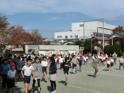 朝から気持ちのよい青空が広がり、今日の中休みもランランランニングが行われました。全校で走ると自然にやる気が出て、少しずつスピードを上げて走っている子どもたちが増えてきました。続けてがんばり、しっかり体力をつけましょうね。