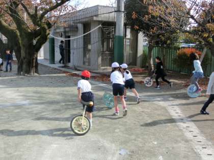 先週から使用を見合わせていた一輪車が修理を終えて解禁になり、子どもたちが早速利用して遊んでいました。引き続き、みんなで使う道具を大切にしながら、休み時間を楽しく過ごしましょう。