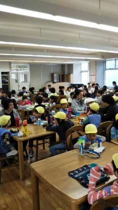 八幡山幼稚園の年長組が、八幡山小学校のランチルームでお弁当を食べる体験をしました。ラッキーにも、3年生のランチルーム給食と一緒になりました。