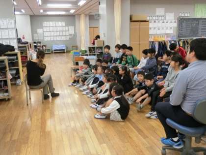 火曜日の朝、1〜3年生の教室では、今朝も読み聞かせを行っていただきました。朝の忙しい時間帯に、いつもありがとうございます。みんなで読み聞かせに集中して、今日も1日落ち着いて学習に取り組むことができます。