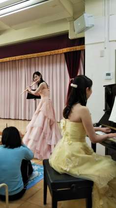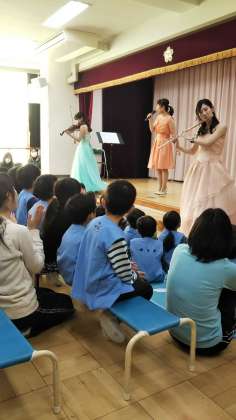 バイオリン、フルート、ピアノの演奏と歌の楽しいコンサートです。