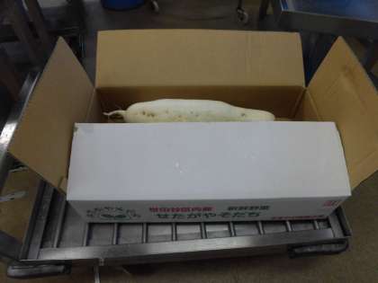 秋口から畑を耕し、種を蒔き、たくさんの手をかけて育てられた、せたがやそだちの「大蔵大根」は、2か月で丸々大きく育ちました。近くの農家さんが皆さんの顔を思い描き心を込めて育て、今朝、素敵な笑顔で給食室に届けてくださいました。味わっていただきたいと思います。