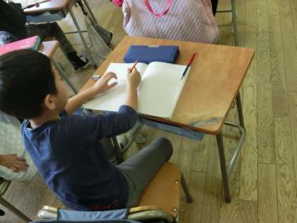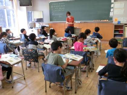 3組の算数の授業は、「たすのかな ひくのかな」の学習。これまでやってきたたし算やひき算の学習をふり返りながら、文章問題を読んでどちらの演算を使うのかを考えます。計算練習はしっかりできるようになって子どもたちです。先生の声かけに、子どもたちは題意をしっかりとらえて問題を解いていました。