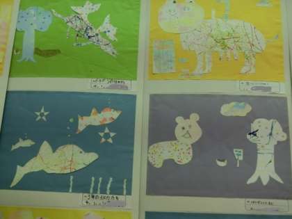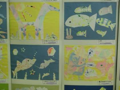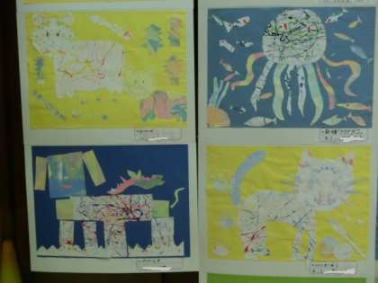 ★展覧会の作品より〜4年生 「絵の具で遊んで自分折り紙」(1)