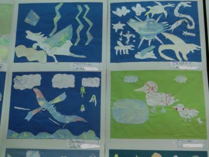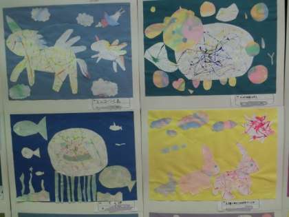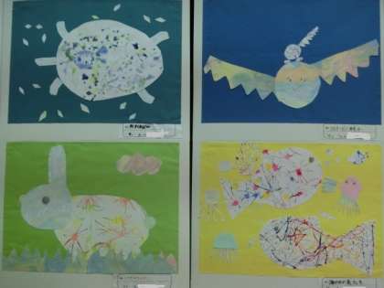 ★展覧会の作品より〜4年生 「絵の具で遊んで自分折り紙」(2)