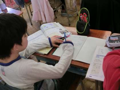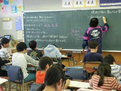 明日の社会科見学の前に、2組の教室では社会科の授業が行われていました。日本の自動車工場について、海外での生産が増えている現状から、日本の企業の努力について考えました。明日は製鉄所と化学工場を見学しますが、教科書では学べない現場でのいろいろな取り組みを、しっかり見てきましょうね。