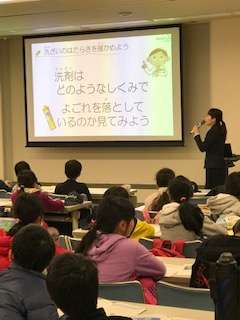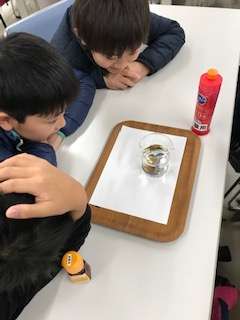 洗剤の働きを確かめる実験を、グループで行いました。目の前でしっかりと結果が分かり、子どもたちも楽しそうです。