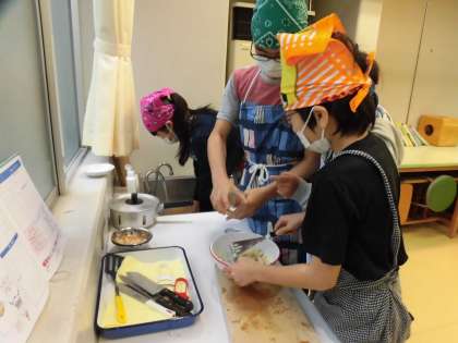 今日は6年生の家庭科の授業で、調理実習が行われました。班で協力しながら、芋料理に挑戦しました。おいしくできて、みんな笑顔いっぱいでした。