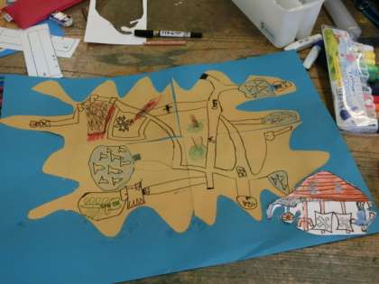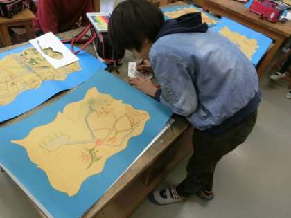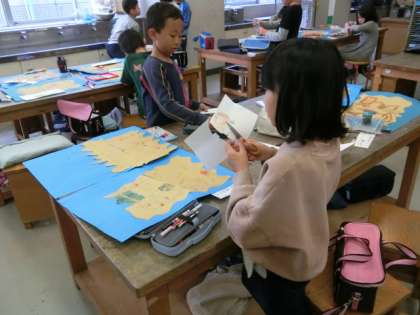 2組の3時間目は、図工の授業です。子どもたちがそれぞれでイメージした「宝島」を作品にしていました。どの作品も、冒険してみたくなるような世界が広がっていて、子どもたちの豊かな想像力が発揮されていました。