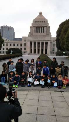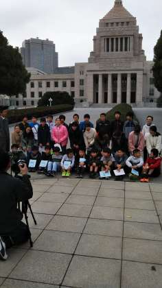 6年生は、国会議事堂の参議院の会議場を見学した後、記念撮影をして、国会議事堂を出発しました。