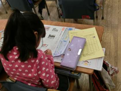 2組の教室では、2学期のテストが返却され、間違い直しをして学習の復習をしました。返されたテストを全て100点になるまでやり直して、先生に見せます。できた問題もできなかった問題もしっかり復習して、積み残しがないようにしましょうね。