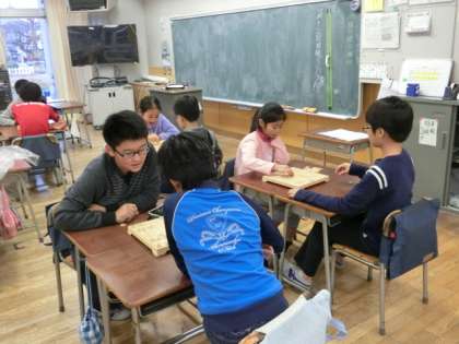 6校時はクラブ活動です。真冬のような寒さの校庭では、サッカークラブの子どもたちが、元気にボールを追いかけていました。室内の本格将棋クラブでは、真剣勝負が繰り広げられていました。工作クラブでは、消しゴムはんこの制作に没頭する子どもたちの様子が見られました。