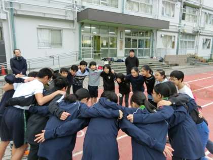 練習の後に、全員で円陣を組んで、大会での活躍を誓い合いました。