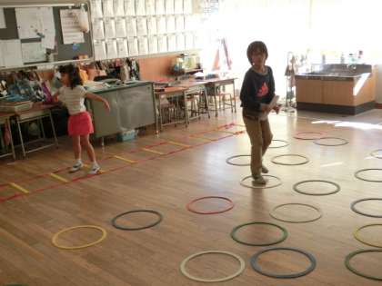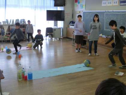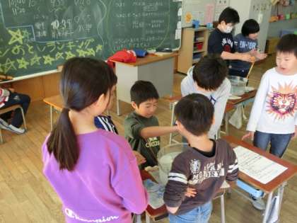 16のお店やさん全てを回るには、35分では時間が足りず、子どもたちはペアで相談しながら回っていました。前半が終了し、後半の子どもたちもお店を回り、時間いっぱい楽しみました。
