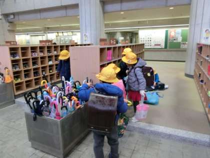 週の始めの月曜日。朝から雨のスタートとなりました。傘をさして登校する1年生も、朝の準備で大忙しです。昼頃から雨もやむようですので、帰りは傘を忘れないようにしましょうね。