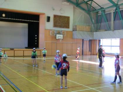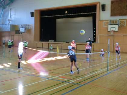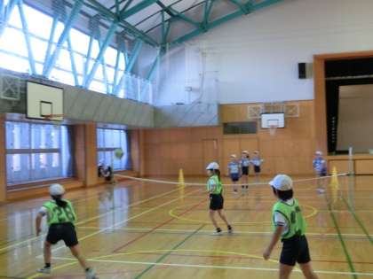 1組の3時間目の体育は、体育館で「ネット型ゲーム」の学習です。バレーボールのネットを挟んで、チームでボールを回す練習をしました。バレーボールのルールではなく、3年生でも取り組みやすくできるように、バウンドでパスし、ネットも低くて取り組みました。チームで練習を重ねていき、今後どんなゲームができるようになるか、とても楽しみですね。