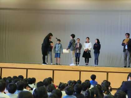 最後に、先日行われた「世田谷子ども駅伝」に参加した代表児童の紹介と表彰を行いました。3学期も勉強にスポーツにがんばる八幡山小学校の子どもたちを応援したいと思います。