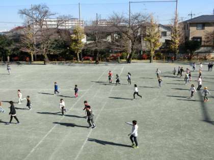 今日はB時程で短い中休みでしたが、校庭ではたくさんお子どもたちが元気に外遊びに興じていました。冬休みに入ると、しばらくはみんなと遊べなくなるので、みんな時間を惜しむように思いっきり身体を動かして遊んでいました。