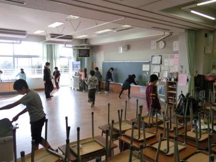 今日は、それぞれ学年ごとに自分たちの教室の大掃除もしました。4年生は、自分たちの教室を中心に、いつも以上にオープンスペースもきれいにしました。勉強で使ったお道具箱の文具やロッカーの中の物なども整理して、新しい年を気持ちよく迎えられるようにしましょう。
