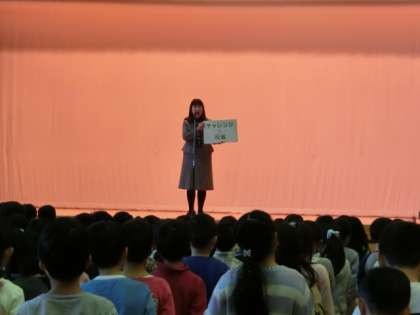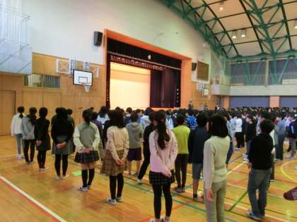 始業式の行われる体育館には、いつものように開始時間5分前には全員がそろい、8時30分のチャイムと同時にきちんと整列して、3学期の始業式を始めることができました。