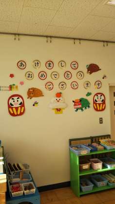 年長組のお正月の部屋飾りです。どのお部屋が、何組さんかな?こちらも先生たちの力作揃いです。