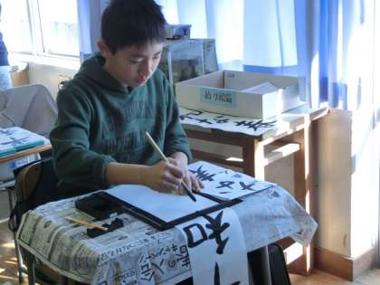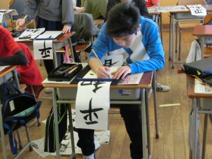 今日は1組で書き初めが行われていました。文字のバランスを気にしながら半紙に向かい、どの子も真剣な表情が印象的でした。書き上げた字を先生や友達に見てもらって、提出する作品を決めます。来週から始まる作品展が楽しみですね。