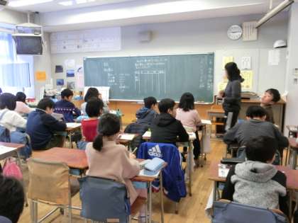 2組の2時間目は、理科の授業です。「電気と私たちの生活」の単元の学習でした。電気が光や熱、運動などに変換されていることについて、私たちの身の回りにあるいろいろな電化製品で考えるという内容の授業でした。子どもたちは積極的に意見を出し合い、活発なやりとりが見られました。