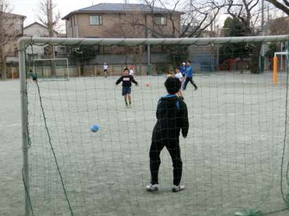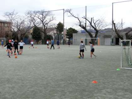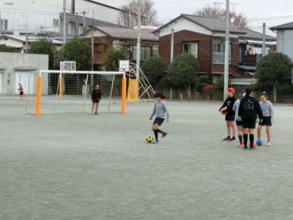 1組の体育は校庭でのボール運動で、サッカーに取り組みました。グループで必要な練習を行った上でゲームに臨みます。今日は日射しもなく、寒い校庭での活動でしたが、友達同士で声をかけ合って、元気にボールを追いかけていました。
