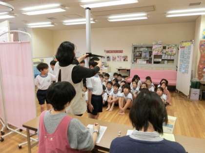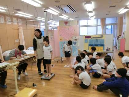 今日は、2年生で3学期発育測定が行われました。最初に保健指導を受けた後、測定を受けるときの約束事を確認しました。1年経って、心も体もぐんと成長した2年生。話を聞く態度や順番を待つ姿勢も大変立派でした。