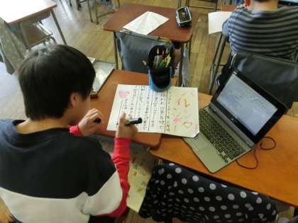 放送委員会では、6年生の委員長を中心にみんなで今後の改善点について話し合っていました。広報委員会は、今回も新聞作りをタブレットを使って調べながら行っていました。お昼の放送にしても、月ごとの壁新聞にしても、楽しみにしている低中学年の子どもたちはとても多いです。3学期も楽しい企画・素敵な新聞を期待しています。