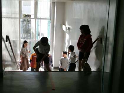 掃除の時間が始まりました。昨日と一昨日は掃除がありませんでしたので、それぞれの割り当て場所をしっかりきれいにしてください。すっきりきれいにして、午後の授業もがんばりましょう。