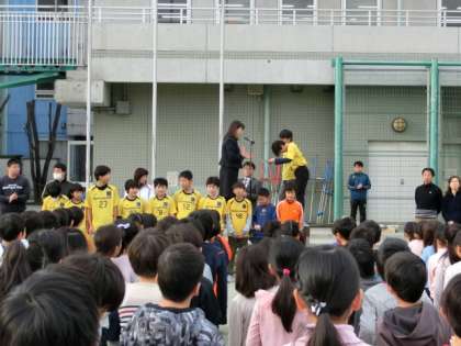 後半はスポーツで活躍した高学年の児童の紹介が行われました。それぞれサッカーと野球の試合で優秀な成績をあげての表彰でした。6年生は小学校生活も残り2ヶ月あまりとなります。八幡山小学校の友達と勉強やスポーツに取り組めるのもわずかです。1日1日を大事に過ごしていきましょうね。
