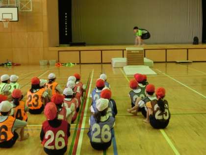 3校時の体育館では、4年1組が跳び箱の学習に取り組んでいました。担任の大石先生と交代で、利根川先生が授業を行い、いろいろな技に挑戦しました。しっかりお手本を見ながら、子どもたちは意欲的に練習に取り組む姿が見られました。