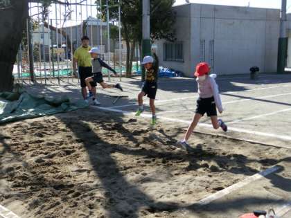 3時間目の校庭では、2年生が体育の授業を行っていました。3組は、走り幅跳びの学習でした。担任の先生の指示のもと、踏み切る足を意識して練習に励みました。繰り返し練習する中で、子どもたちは少しずつ感覚をつかんでいったようでした。