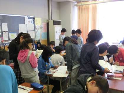 4校時の1組は、道徳の授業です。家族の一員として「家族のために」を主題とした学習に取り組みました。普段の生活の中で、家族みんなのために自分が行っていることを発表した後、教材に入ります。作品を読んだ後、友達同士で感想を交流する中で、相手の立場になって考えることの大切さや、家族のためにすすんで自分ができることについて考えました。1組の子どもたちは、積極的に意見交換をしながら、さらに考えを深めようとしていました。