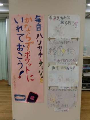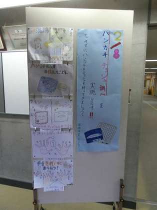 保健委員会が企画する「ハンカチ・ティッシュ調べ」が2月8日に行われます。皆さん、ポケットの中に入っていますか?各フロアに委員会からのお知らせが掲示されましたので、毎朝確認してから登校するようにしましょうね。