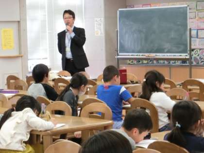 3年生は先週に続き、『八幡山今昔物語』の授業が行われました。今日は、毎年お願いしている、元PTA会長で本校の学校運営委員会の委員長でもある櫻井信広さんにご来校いただき、八幡山小学校の昔の様子などについてお話していただきました。本校の卒業生である櫻井さんは、ご自身の小学生の頃の資料をたくさんご持参いただき、子どもたちに見せてくれました。映像を交えた講義で、子どもたちも興味津々な様子で、一生懸命メモをとっていました。今日はお忙しい中、ありがとうございました。