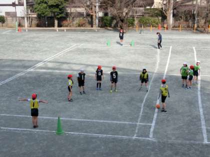 3組の6時間目は、校庭での体育の授業です。ゴール型ゲームの活動で、ラインサッカーに取り組みました。男女混合でのチームで作戦を考えて、全員でゴールを目指してゲームを楽しんでいました。今日は朝からぐんぐん気温も上がり、子どもたちもしっかり身体を動かせたようです。