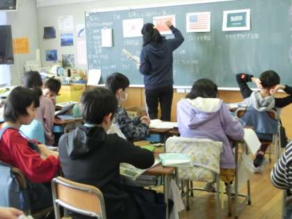 2組の社会科の授業は、「日本とつながりの深い国々」の単元の学習。日本と縁のある4つの国を取り上げて、グラフや表などから分かることを考えてノートにまとめます。アメリカや韓国、サウジアラビアなど、世界のさまざまな地域の国々との関係を調べ、世界に目を向ける学習を通して、中学の勉強につなげていってほしいです。