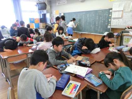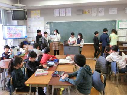今年度最後となる「なかよし学級」の活動が4校時に行われました。今日は、1年間お世話になったリーダーの6年生に、ありがとうの気持ちを伝えます。最初に6年生のリーダーと副リーダーの進行で始まり、続いて、来年度のリーダーである5年生にバトンタッチをしました。5年生も一生懸命に班をまとめようとがんばっていました。