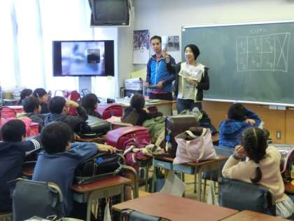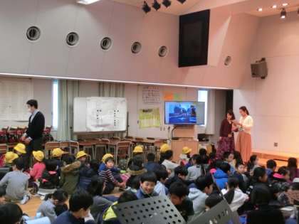 次に、各地区班による集団下校のめあての確認をしました。この活動は、大型台風や大雪などの影響などの非常時に際して、個別での下校が困難と思われる場合を想定し、同じ地域に住む子どもたちが集団で安全に下校できるようにすることが本来のねらいです。さらに、それぞれ通学路の危険な場所の確認と、変更になった通学路の確認なども行われます。それぞれの班で、担当の校外委員さんが中心となって行っていただきました。教室のモニターに実際の現場の写真を映したりして、子どもたちから話を聞いたりして進められました。