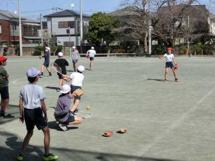 4校時の1組の体育は、爽やかな青空の下、校庭で行われました。ベースボール型のボール運動に取り組みました。キャッチボールから始まり、ラケットを使っての打撃練習など、みんなで協力しながら、笑顔で楽しく課題に取り組んでいました。