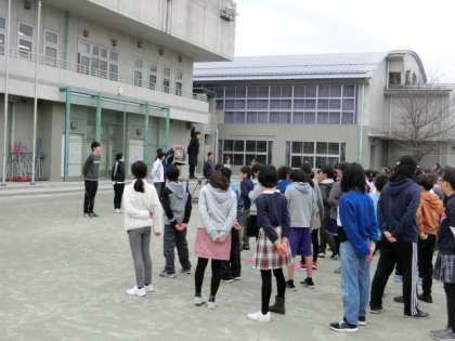 2月最後の全校朝会は、校庭で行われました。校長先生からは、2020年東京オリンピックに向けた日本人選手の活躍についてのお話がありました。お話の後で、サッカーで活躍した6年生の表彰と選手の紹介がありました。朝礼台の前に整列して、全校児童の前で凛々しい6年生の姿が輝いていました。
