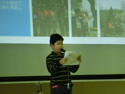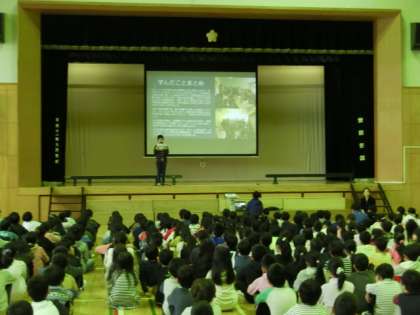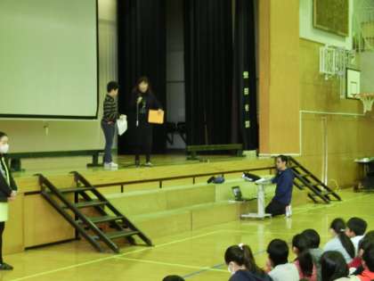 雨の月曜日、全校朝会は体育館で行われました。今日は、2学期に世田谷区小学生海外派遣制度でオーストリアに行った5年生の児童の報告会が行われました。現地の小学生との交流の様子や、ホームステイ先での思い出などを、写真で紹介しながら発表しました。充実した日々を送ることができたようで、聞いている子どもたちも海外生活への興味を深めることができました。立派な発表でした。