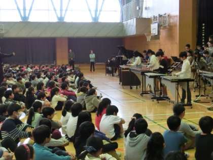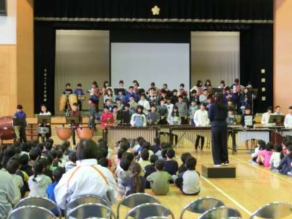 中休みの時間を使って、6年生は、今日の午後の感謝の会で披露する楽曲『アフリカンシンフォニー』の発表会を行いました。6年生を送る会でも披露しましたが、その時と違う楽器を担当する児童の練習を兼ねての発表となりました。練習を繰り返してきた6年生の勇姿に、下級生は再び圧倒されていました。午後の本番でも、素敵な演奏を披露してくれることでしょう。