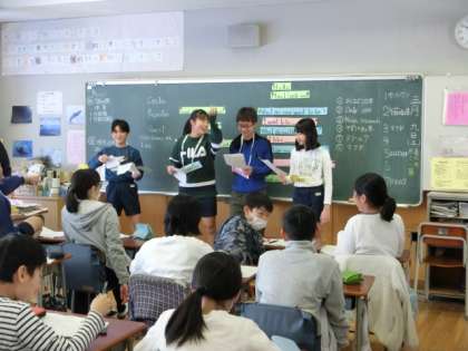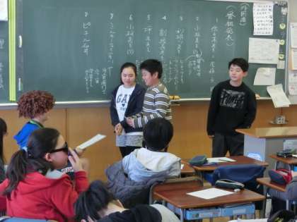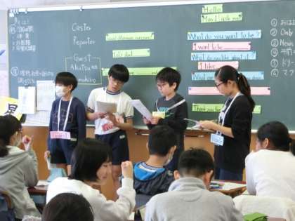 6年生の外国語活動も残りわずかです。今日は各クラスで、英語での発表が行われていました。それぞれグループで調べたことやインタビューしてきたことを紹介し、聞き取りをします。みんなの前で英語で話すのに、少し恥ずかしがる様子も見たれましたが、一生懸命にがんばっていました。