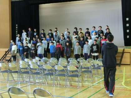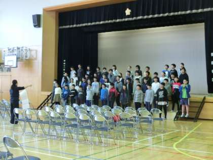 3時間目の6年生は、卒業式で歌う歌の練習を体育館で行いました。今年も、『ウィズ・ユー・スマイル』『旅立ちの日に』と、卒業式の定番の曲を合唱しますが、本番に向けてまだまだ気持ちを高めていきたいところです。感動の卒業式にするために、残り10日、しっかり練習していきましょう。