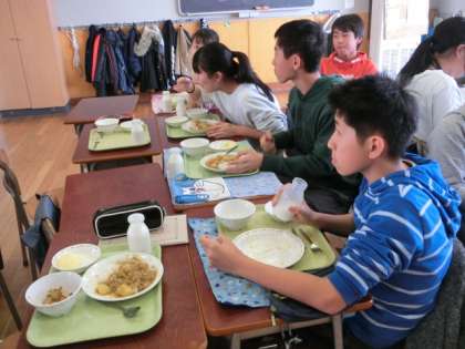 今日の給食は、みんなの大好きなカレーライスです。6年生は小学校で食べる最後もカレーライスになります。これから大人に近づくにつれて、きっとみんなの懐かしい、思い出の味になると思います。しっかり味わって食べてくださいね。